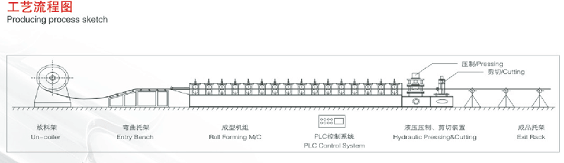 9、机组包括:成型主机、液压站、放料架、成型剪、控制箱、出料架。