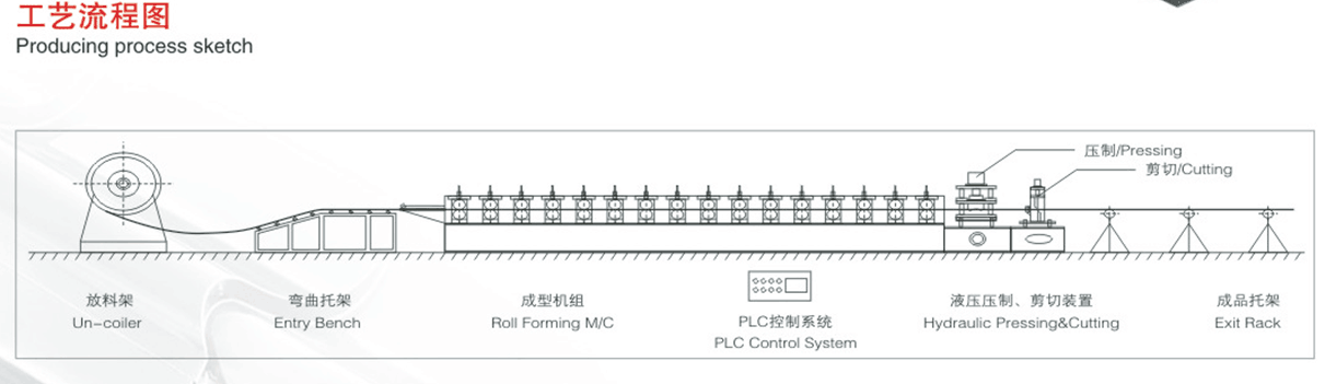 彩钢琉璃瓦设备主要由放料机、进料导入平台、成型主机、冲模压型装置、成型剪切装置、液压站、电脑控制系统、成品托架等几部分组成。
